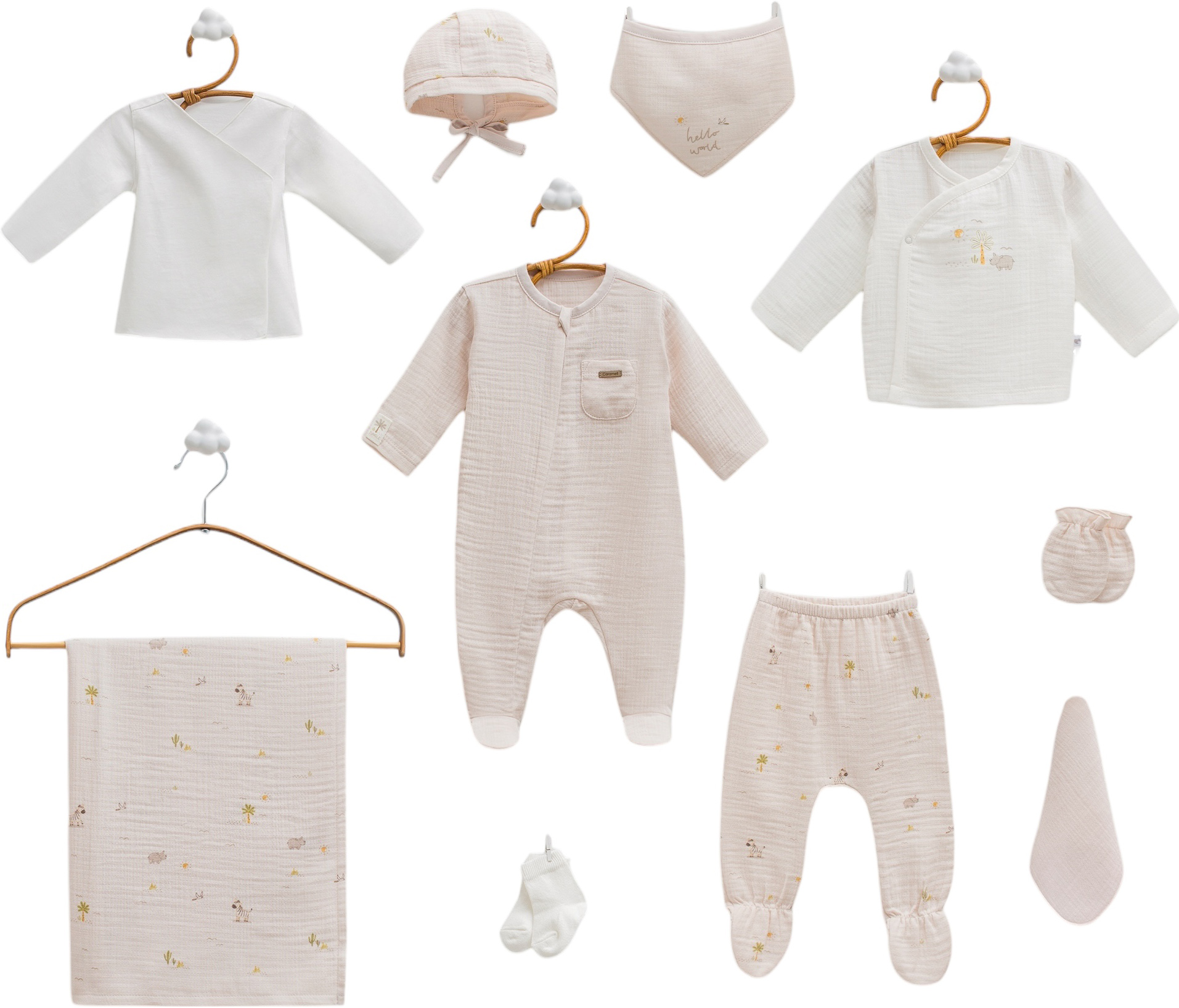 Give your little one the perfect start with this beautifully designed 10-piece newborn essentials set, thoughtfully created to provide comfort, softness, and practicality during your baby’s first months. Made from gentle, breathable fabric that is soft on delicate newborn skin, this complete set includes everything your baby needs for everyday comfort.